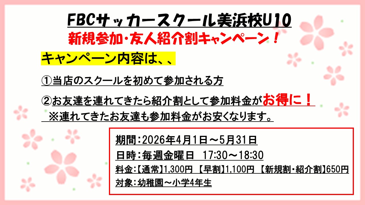 【FBCサッカースクールU10 春キャンペーン!】