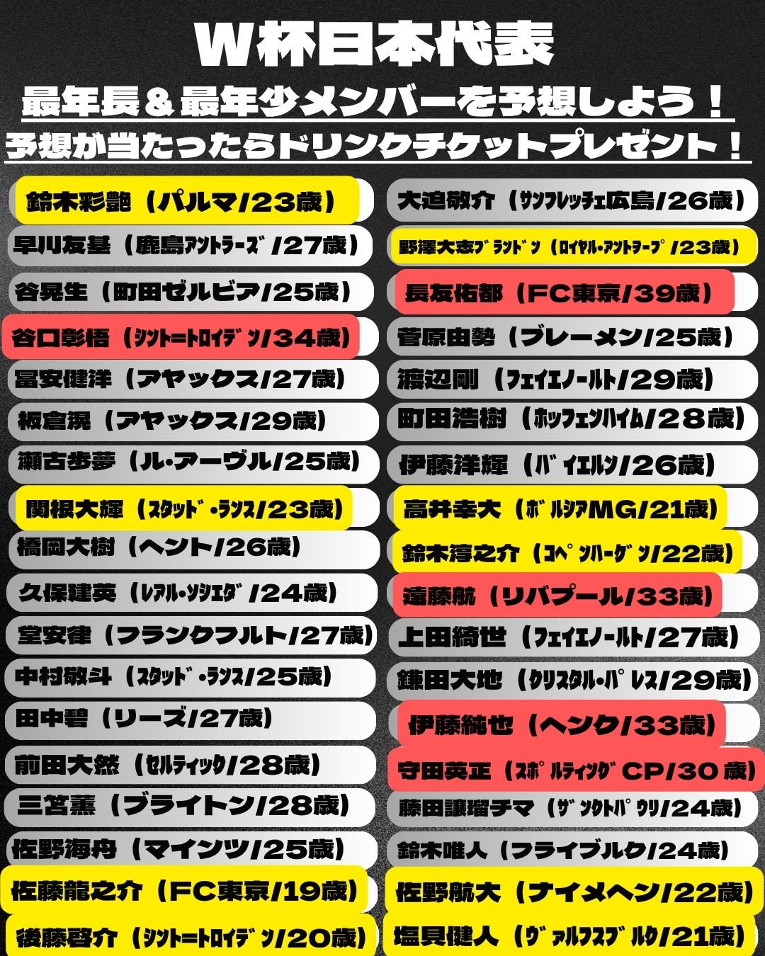 【W杯キャンペーン最年長&最年少メンバー予想!】